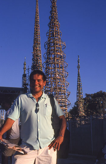 Donis gathers signatures to reinstate the “WAR” exhibit during the afternoon music festival for the reopening of the Watts Towers on Saturday September 29, 2001.