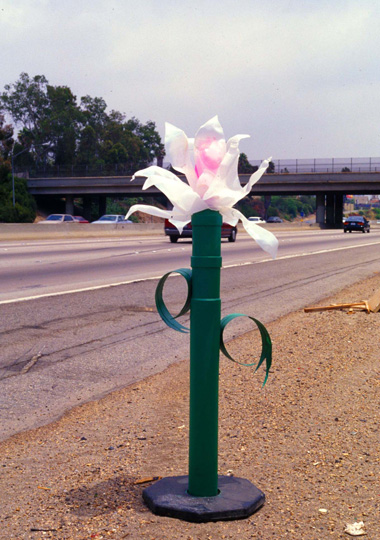 Beauty Happening, 2000 Public sculpture placed along 10 freeway Plastic, wire, and paint on street barrier approximately 48” x 16” diameter Nonextant