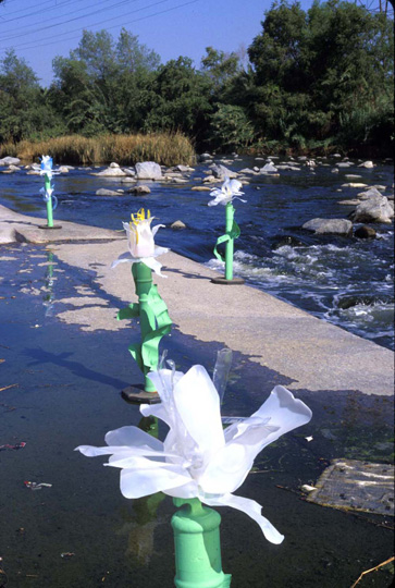 Beauty Happening, 2000 "River Visions" exhibit along LA River Plastic, wire, and paint on street barrier Seven flowers each approximately 48” x 16” diameter Nonextant