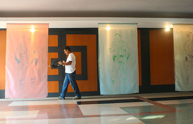 Wet Dreams (Sueños Mojados), 2007 Galería Raúl Oliva, Centro Cultural Bertolt Brecht 10th Habana Bienal, Habana, Cuba Installation acrylic on silk fabric 9' x 28'