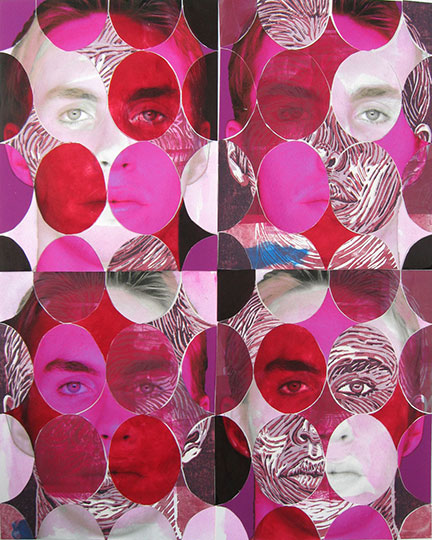 Linocut, mixed media on photo