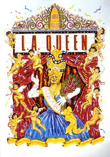 LA Queen, 1993 Silkscreen on paper 40" x 28" Edition of 40 In the permanent collections of the UC Santa Barbara Archive and the University of Texas Libraries and Archives, Austin