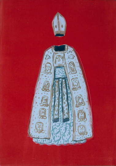 Papal vestment (Mayan Glyphs), 2015 Monotype and gold leaf on paper 22" x 15"