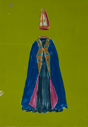 Papal vestment (Chartreuse & Lapis), 2015 Monotype & gold leaf on paper 22" x 15"