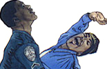 The painting series comprised of fictionalized pairings between LAPD officers and gang members in same-sex hip-hop dancing poses. The exhibit also featured companion wall text by renowned African-American poet Keith Antar Mason and a dance mix sound-scape by sound artist Morgan Barnard.